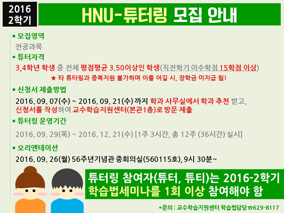 [교수학습지원센터]2016-2 HNU-튜터링 모집안내
